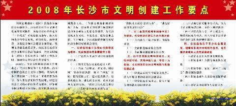 2008年,是长沙市创建全国文明城市冲刺的一年,更是关键的一年。为了配合全市的文明创建工作,贯彻市政府和教育局文明创建工作会议的精神,推动我市文明创建工作的进程,我校进行了一系列行之有效的工作。自开学以来,我校先后利用国旗下讲话,班会活动多次向全校师生宣传文明创建工作。学校党委书记黎辉于4月22日专门对全体教职工进行文明创建工作的讲座,教育和引导教职工投入到文明创建工作中来。学校还充分发挥校内宣传平台,制作宣传海报、横幅、电子屏向师生宣传创建工作的重要性,形成了很好的创建氛围。(文/陈智球)