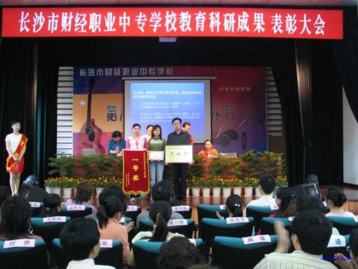 4月4日下午2:30长沙市财经职业中等专业学校教育科研成果表彰大会在四楼会议室隆重召开。会议由彭建成副校长主持,冯庆珍副校长宣读《2005——2006学年度学校教育科研成果表彰决定》,学校领导分七批次向获奖教师代表颁奖。