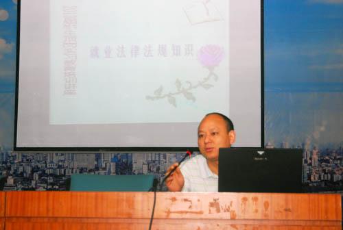 邓腊良老师从就业的角度告诉学生如何用法律保护自己、维护正当权益。
