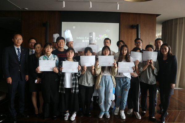 最后酒店总经理苏总发表总结讲话以及与学生们分享自己的职业规划,学生们听后都受益匪浅。会后还亲自为实习生颁发实习证书与留影,会场在热烈的氛围中结束。