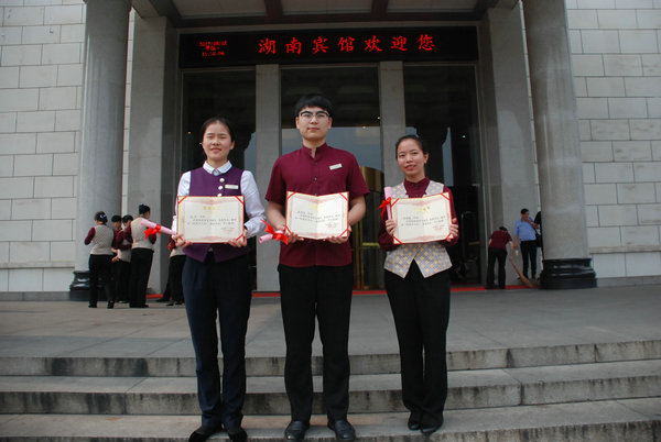 湖南宾馆历年来都是我校的优秀合作单位,每一届顶岗实习学生的稳定率和留用率都是名列前茅。今年,这13名顶岗实习学生全部圆满的完成了实习,并与酒店签订了劳务合同。实习稳定率和留用率都是100%。